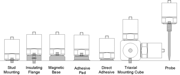 Si se está en la fase de investigación y todavía no conoce el punto fijo de la instalación del sensor recomendamos soportes magnéticos o adhesivos. Sin embargo si se conoce el punto exacto de ubicación para tener mediciones, preferimos utilizar montajes de tornillo que aseguran una mayor frecuencia en la medición al hacer que el sensor y el instrumento medido simulen una sola pieza o cuerpo.